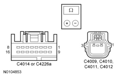 - Disconnect: Suspect Parking Aid Sensor C4009, C4010, C4011 and C4012.