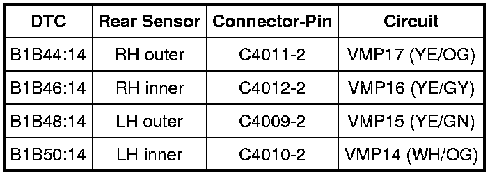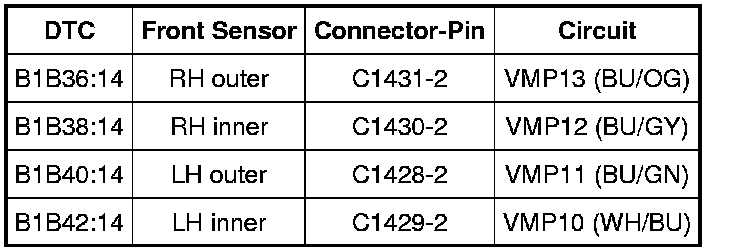 Pinpoint Test B: DTC B1B36:14, B1B38:14, B1B40:14, B1B42:14, B1B44:14, B1B46:14, B1B48:14 Or B1B50:14