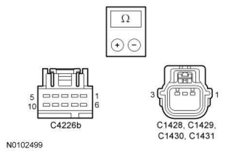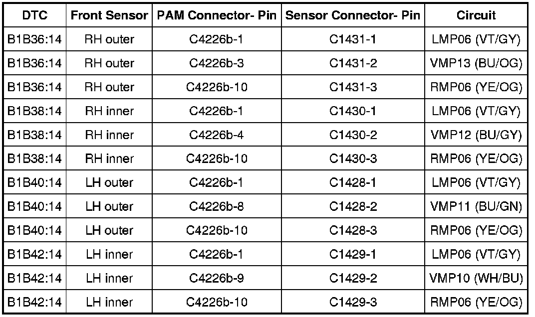 - Disconnect: Suspect Parking Aid Sensor C1428, C1429, C1430 and C1431.