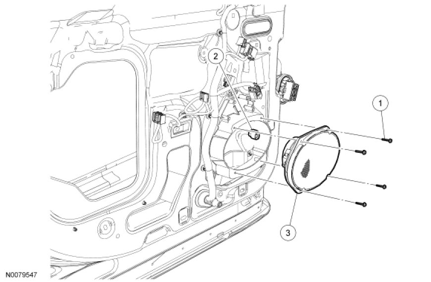 3. Remove the fasteners (4 screws for the door speaker, one nut for the rear door tweeter speaker) and remove the speaker.