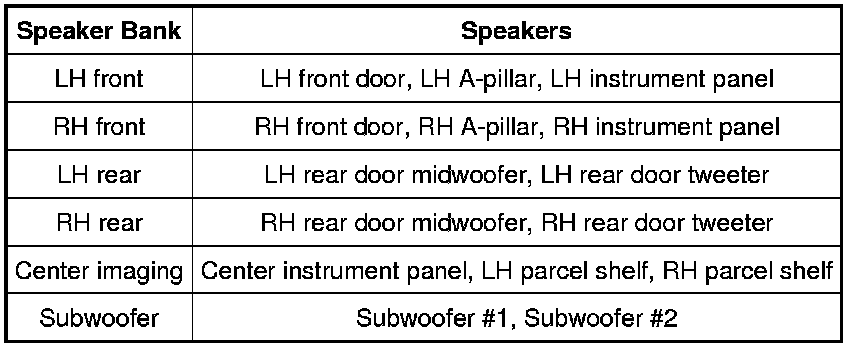 The Audio Control Module (ACM) directs audio signals to the audio Digital Signal Processing (DSP) module in the form of an AC voltage. The audio DSP module boosts the audio signals and sends them to the speakers. The audio DSP module provides internal circuit protection for shorts to ground or voltage.