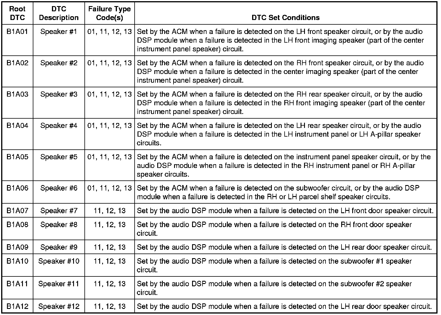 A short to ground or voltage in the circuitry to one of the speakers can cause multiple speakers on the same channel, or even all speakers to lose sound due to the built-in overload protection feature of the audio DSP module. In this case, a speaker fault DTC sets, and this pinpoint test should be followed to isolate the damaged circuit.