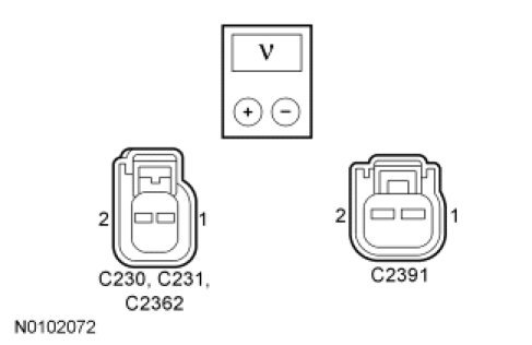 - Measure the voltage between the suspect crossover, harness side and ground as follows: