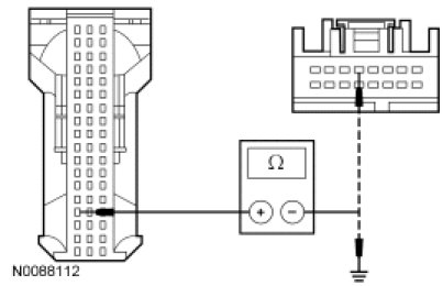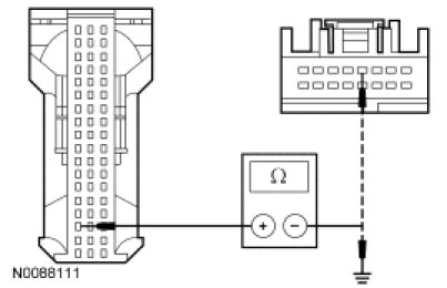 - Measure the resistance between the APIM C3342-4, circuit RMN14 (GY/BN), harness side and the ACM C240c-5 or C2253c-5, circuit RMN14 (GY/BN), harness side; and between the APIM C3342-4, circuit RMN14 (GY/BN), harness side and ground.