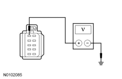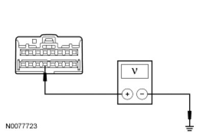 - For a concern with the VOICE, PHONE, or OK switches, measure the voltage between the steering wheel controls C2999-6, circuit VME54 (YE), harness side and ground.