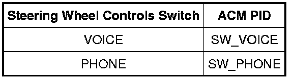 - Monitor the steering wheel controls PIDs while pressing each steering wheel controls switch as follows: