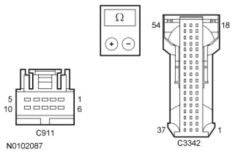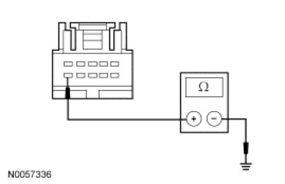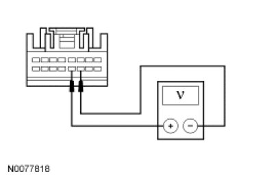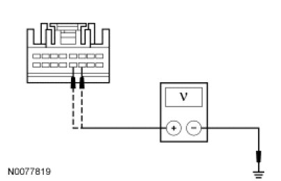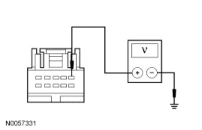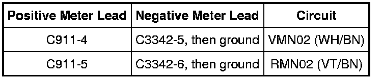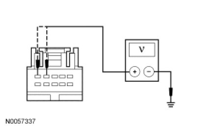 - Measure the voltage between the auto-dimming interior mirror C911-4, circuit VMN02 (WH/BN), harness side and ground; and between the auto-dimming interior mirror C911-5, circuit RMN02 (VT/BN), harness side and ground.