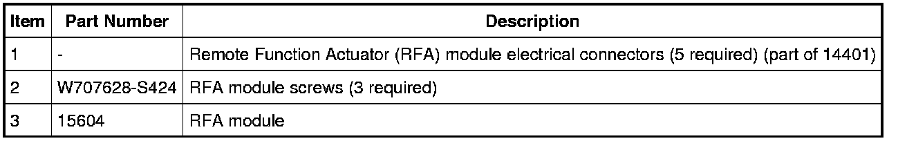 NOTE: The Programmable Module Installation (PMI) process does not include the Intelligent Access (IA) key programming into the new Remote Function Actuator (RFA) module. After the PMI process has been completed, the IA keys need to be programmed into the new RFA module during ignition off. For additional information, refer to Key Programming Using Diagnostic Equipment - Intelligent Access (IA) in Anti-Theft - Passive Anti-Theft System (PATS) Programming and Relearning. After the IA keys have been programmed into the new RFA module, the ignition must be turned to the ON mode in order to reset the parameters in the new RFA module and the PCM. For additional information, refer to Passive Anti-Theft System (PATS) Parameter Reset - Intelligent Access (IA) in Anti-Theft - Passive Anti-Theft System (PATS) Programming and Relearning.