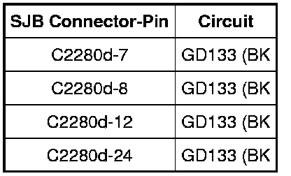 - Measure the voltage between the SJB C2280G-1, circuit SBB01 (RD), harness side and ground.