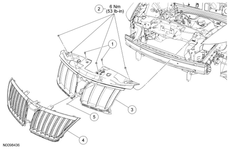 2. Remove the radiator grille reinforcement-to-bumper insulator rivet.