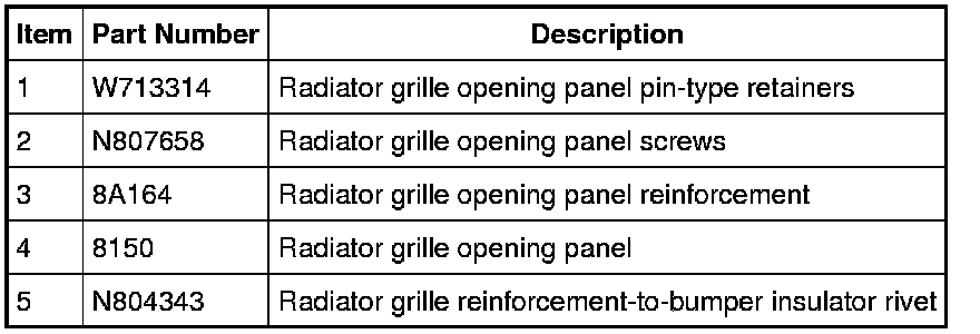 4. Pull outward to release the radiator grille opening panel from the radiator grille opening panel reinforcement.