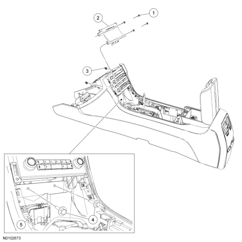4. NOTE: LH floor console lower trim panel shown, RH floor console lower trim panel similar.