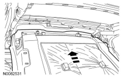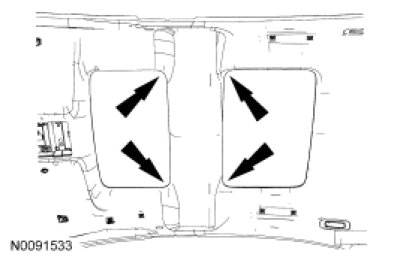 19. If equipped with a moonroof, simultaneously pull downward on the rear corners of the front roof opening panel opening and the front corners of the rear roof opening panel opening to release the magnets from the roof.