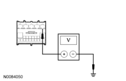 - Measure the voltage between the RFA module C2153c-1, circuit SBP27 (BU/RD), harness side and ground.