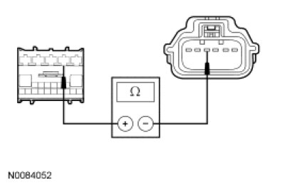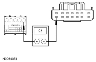 - Measure the resistance between the RFA module C2153d-2, circuit CPL11 (GY/BN), harness side and the RH front door latch C603-4, circuit CPL11 (GY/BN), harness side.