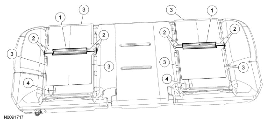 1. Remove the rear seat cushion. For additional information, refer to Seat Cushion - Rear Seat Cushion - Rear.
