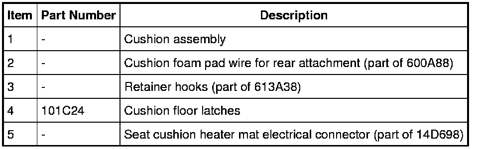 2. Lift up and pull out at the rear outboard ends of the cushion assembly, disengaging the cushion assembly wires from the retainer hooks.
