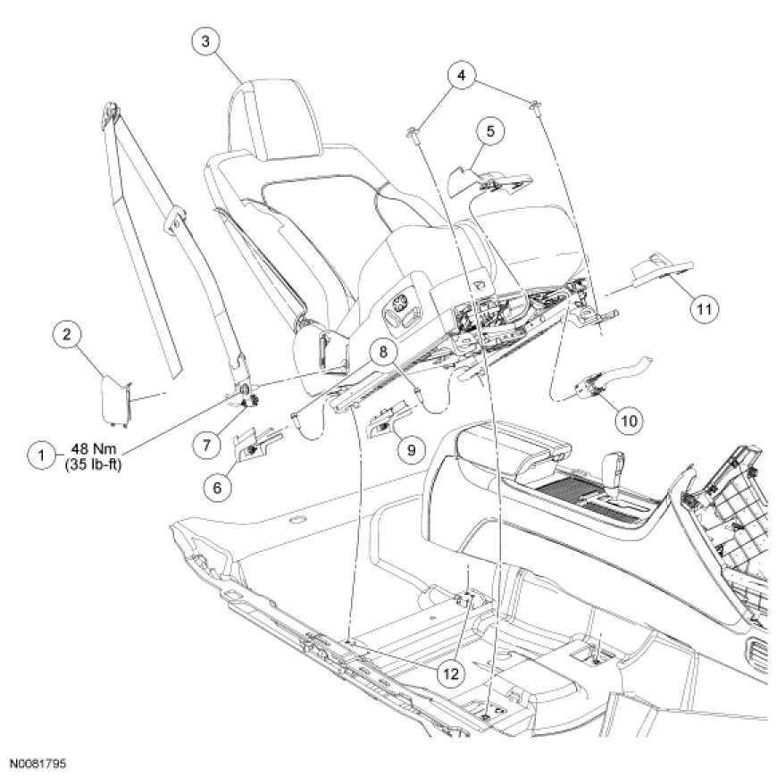 NOTE: Follow the installation procedure for correct seat fastener tightening sequence. The front mounting bolts must be installed and tightened to the correct specification before the rear mounting bolts.