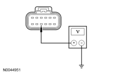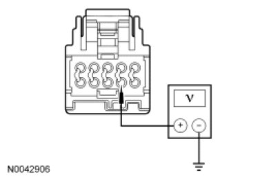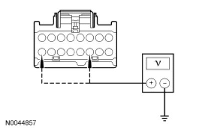 - Measure the voltage between DCSM C3265a-K, circuit RHS01 (WH/VT), harness side and ground.