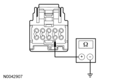 - NOTE: The ohmmeter must be connected with the positive lead to DCSM C3265c-16, circuit CHS03 (GN/BN) and the negative lead to DCSM C3265c-15, circuit RHS03 (GY/OG) when measuring. Ohmmeter leads incorrectly connected will result in false readings and lead to incorrect identification of components that are not faulty.