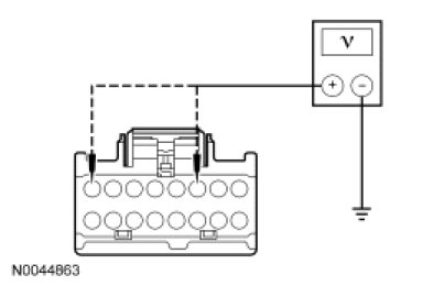 - Measure the voltage between DCSM C3265b-2, circuit VHS27 (WH/OG), harness side and ground.