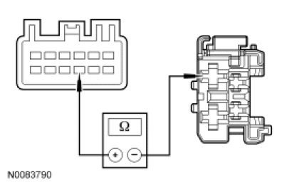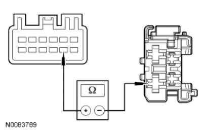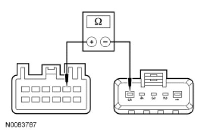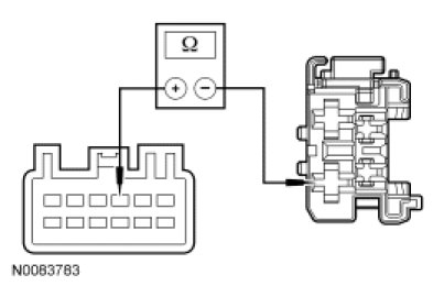 - Measure the resistance between seat control switch C3190a-9, circuit CPS39 (GY/YE), harness side and passenger seat recliner motor C3189-1, circuit CPS07 (GY/BN), harness side.