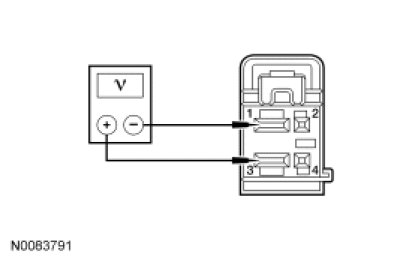 - Measure the voltage between recliner motor C3189-3, circuit CPS08 (VT/OG), harness side and C3189-1, circuit CPS07 (GY/BN), while depressing the seat control switch forward and backward.