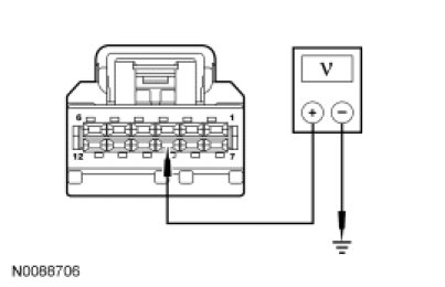 - Measure the voltage between heated seat module C3304a-9, circuit VHS45 (GY/BN), harness side and ground.