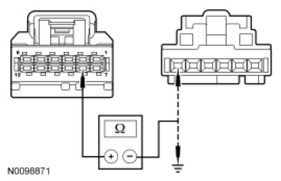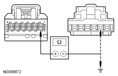 - Measure the resistance between rear heated seat module C3304a-8, circuit CHS50 (BU/GY), harness side and ground while pressing the high heated seat switch.
