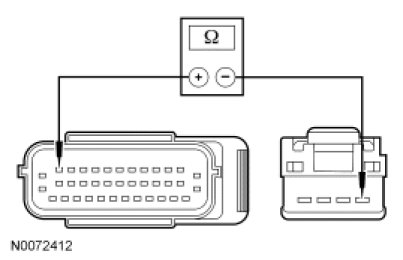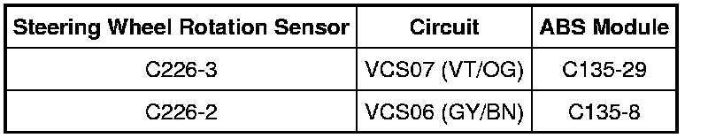 - Measure the resistance between steering wheel rotation sensor C226-1, circuit RCS06 (BN/VT), harness side and ABS module C135-12, circuit RCS06 (BN/VT), harness side.