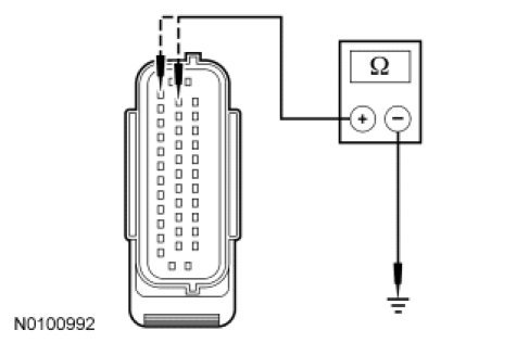 - Measure the resistance between ABS module C135-24, circuit VCA24 (GN/OG), harness side and ABS module C135-37, circuit VCA23 (BU/WH), harness side.