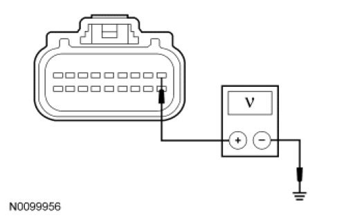 - Measure the voltage between the C-CM C1582-1, circuit SBB13 (GY/RD), harness side and ground.