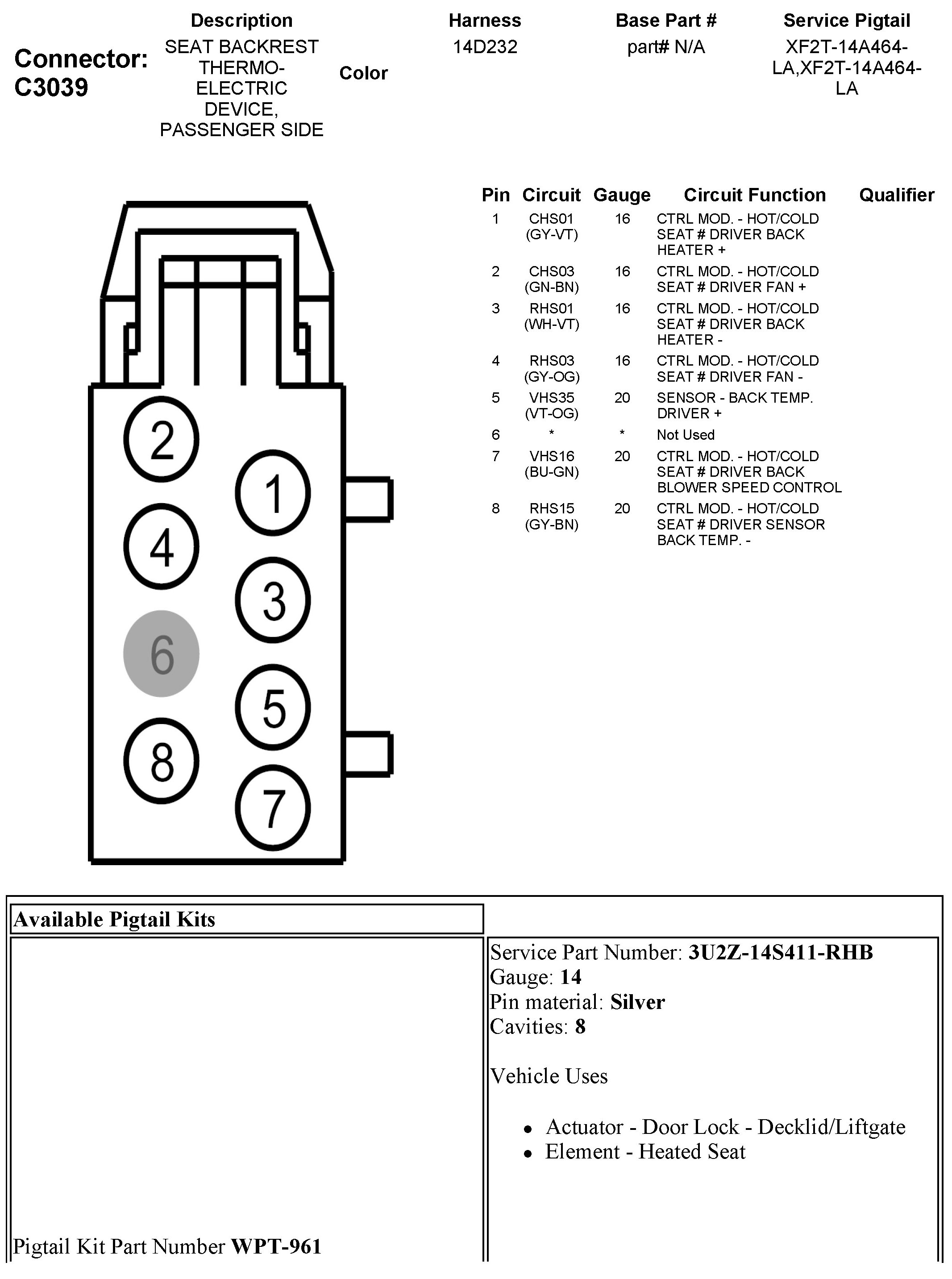 C3039 Seat Backrest Thermo-Electric Device, Passenger Side
