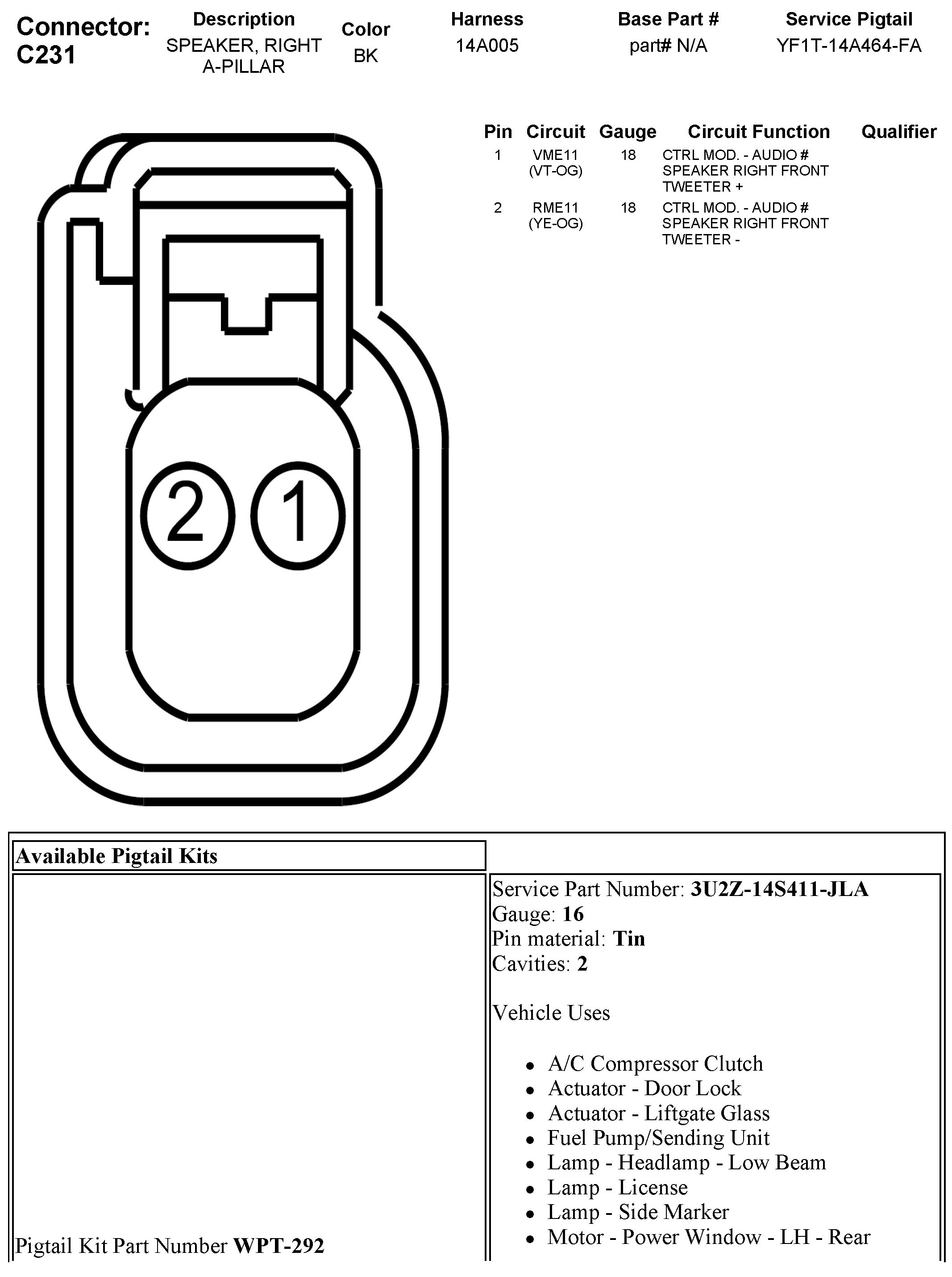 C231 Speaker, Right A-Pillar