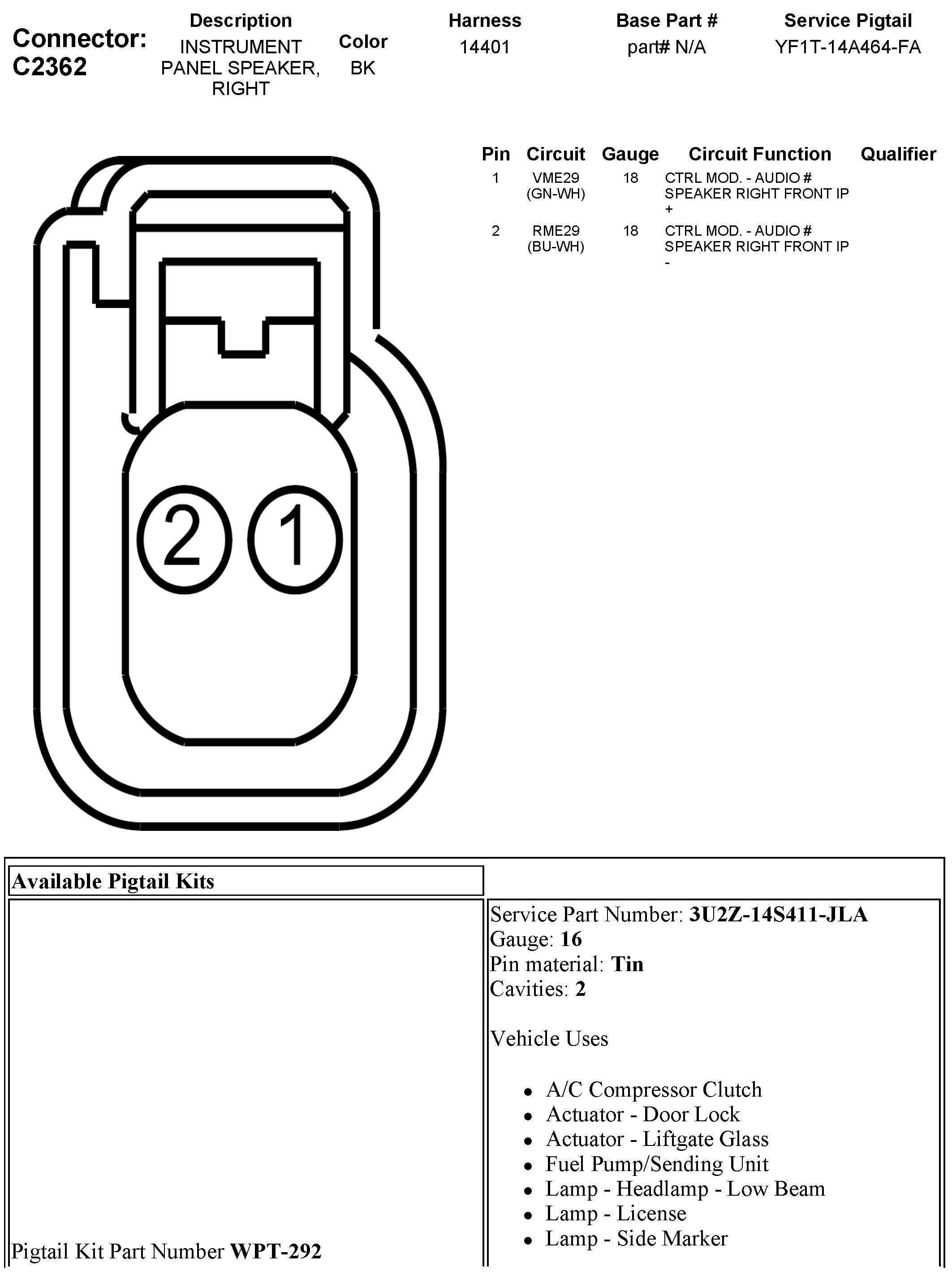 C2362 Instrument Panel Speaker, Right