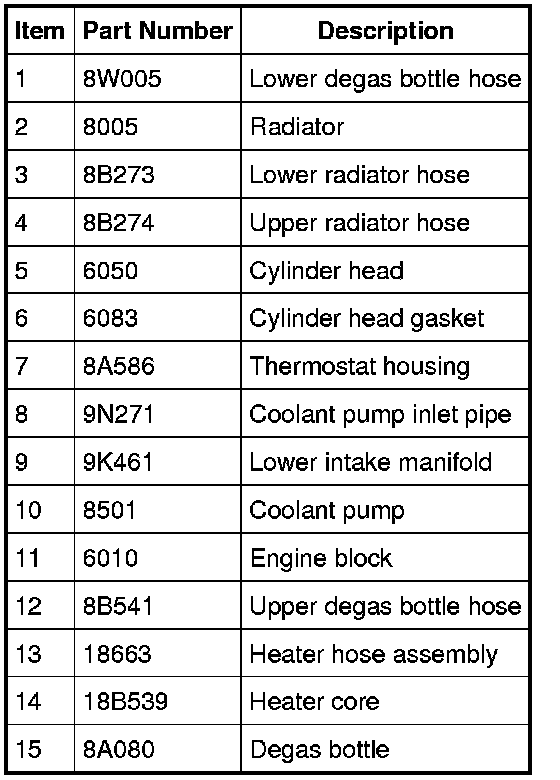 NOTICE: The engine cooling system is filled with Motorcraft(R) Specialty Green Engine Coolant. Always fill the cooling system with the manufacturer's specified coolant. If a non-specified coolant has been used the cooling system must be chemically flushed. Refer to Cooling System Flushing. Failure to follow these instructions may damage the engine or cooling system. Cooling System Flushing