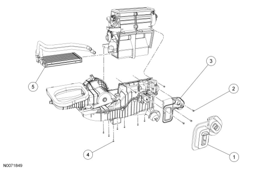 1. Remove the heater core and evaporator core housing. For additional information, refer to Heater Core And Evaporator Core Housing Service and Repair.