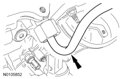 24. NOTE: Make sure the turbocharger wastegate regulating valve hose does not contact the exhaust manifold heat shield.
