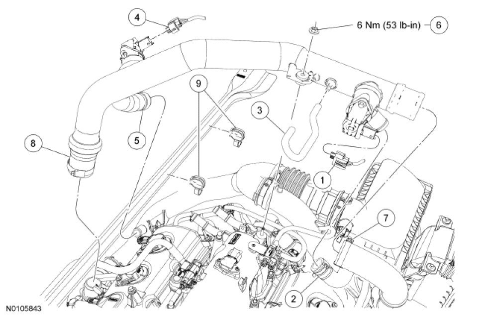 Install the RH CAC tube and turbocharger intake tube as an assembly and install the RH CAC tube nut to the intake manifold.