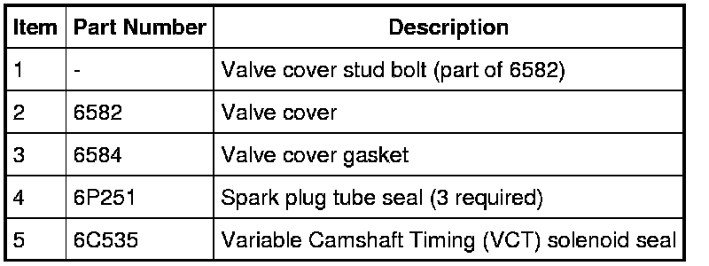 Inspect the VCT solenoid seals and the spark plug tube seals. Remove any damaged seals.