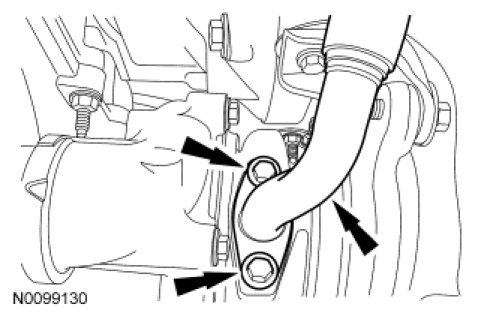 158. Tighten the lower turbocharger bracket-to-turbocharger bolt.