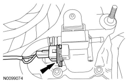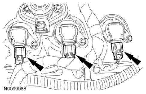 22. Disconnect the LH Variable Camshaft Timing (VCT) solenoid electrical connector.