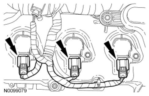 45. Disconnect the 3 RH ignition coil-on-plug electrical connectors.