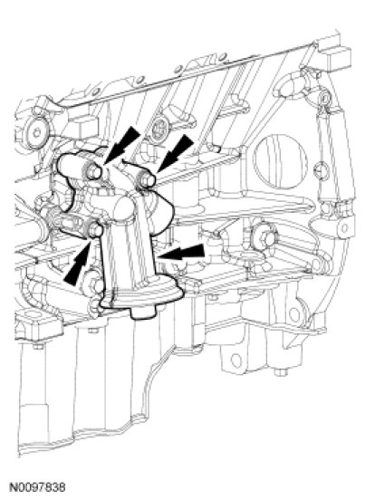 NOTICE: During engine repair procedures, cleanliness is extremely important. Any foreign material, including any material created while cleaning gasket surfaces that enters the oil passages, coolant passages or the oil pan, may cause engine failure.