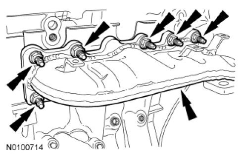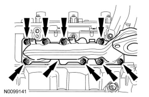 84. Clean and inspect the RH exhaust manifold. For additional information, refer to Engine System - General Information Exhaust Manifold Cleaning and Inspection.