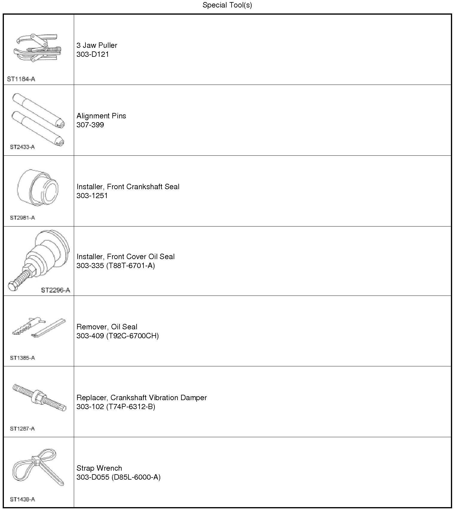 1. Tighten the bolts one turn at a time in a crisscross pattern until the engine front cover-to-cylinder block seal is released.