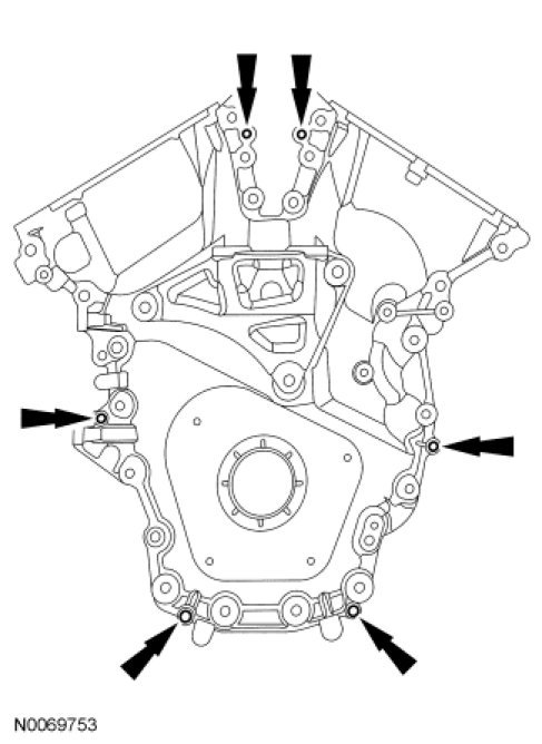 NOTICE: During engine repair procedures, cleanliness is extremely important. Any foreign material, including any material created while cleaning gasket surfaces that enters the oil passages, coolant passages or the oil pan, may cause engine failure.