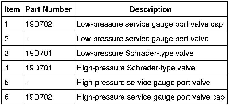 An A/C pressure relief valve is incorporated in the A/C compressor, as a redundant backup to the A/C pressure transducer, to prevent damage to the A/C compressor and other system components by relieving unusually high system discharge pressure buildups. The valve will open at approximately 3,792 kPa (550 psi), and will close at approximately 2,756 kPa (400 psi). Under normal conditions the A/C pressure relief valve will never vent. Only a failure of the A/C pressure relief valve, A/C pressure transducer or A/C clutch control system, overheating of the refrigerant system, or a restriction in the refrigerant system between the A/C compressor and A/C pressure transducer will cause the A/C pressure relief valve to vent.