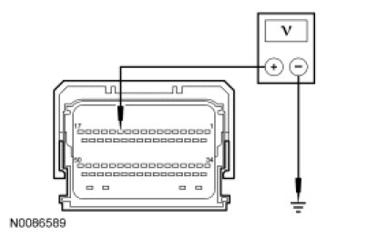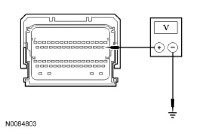 - For 3.5L only, measure the voltage resistance ground and PCM C1381B-12, circuit CH302 (WH/BN), harness side.