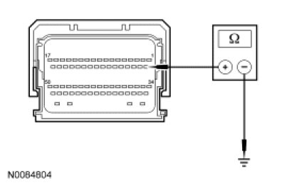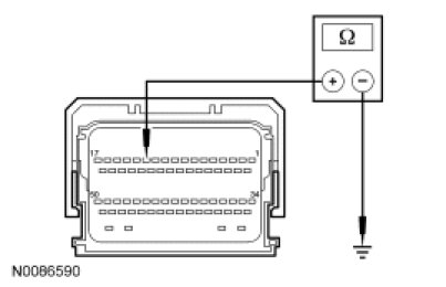 - For 3.7L only, measure the resistance between ground and PCM C175B-18, circuit CH302 (WH/BN), harness side.